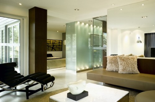 Fachada delantera y trasera de residencia minimalista